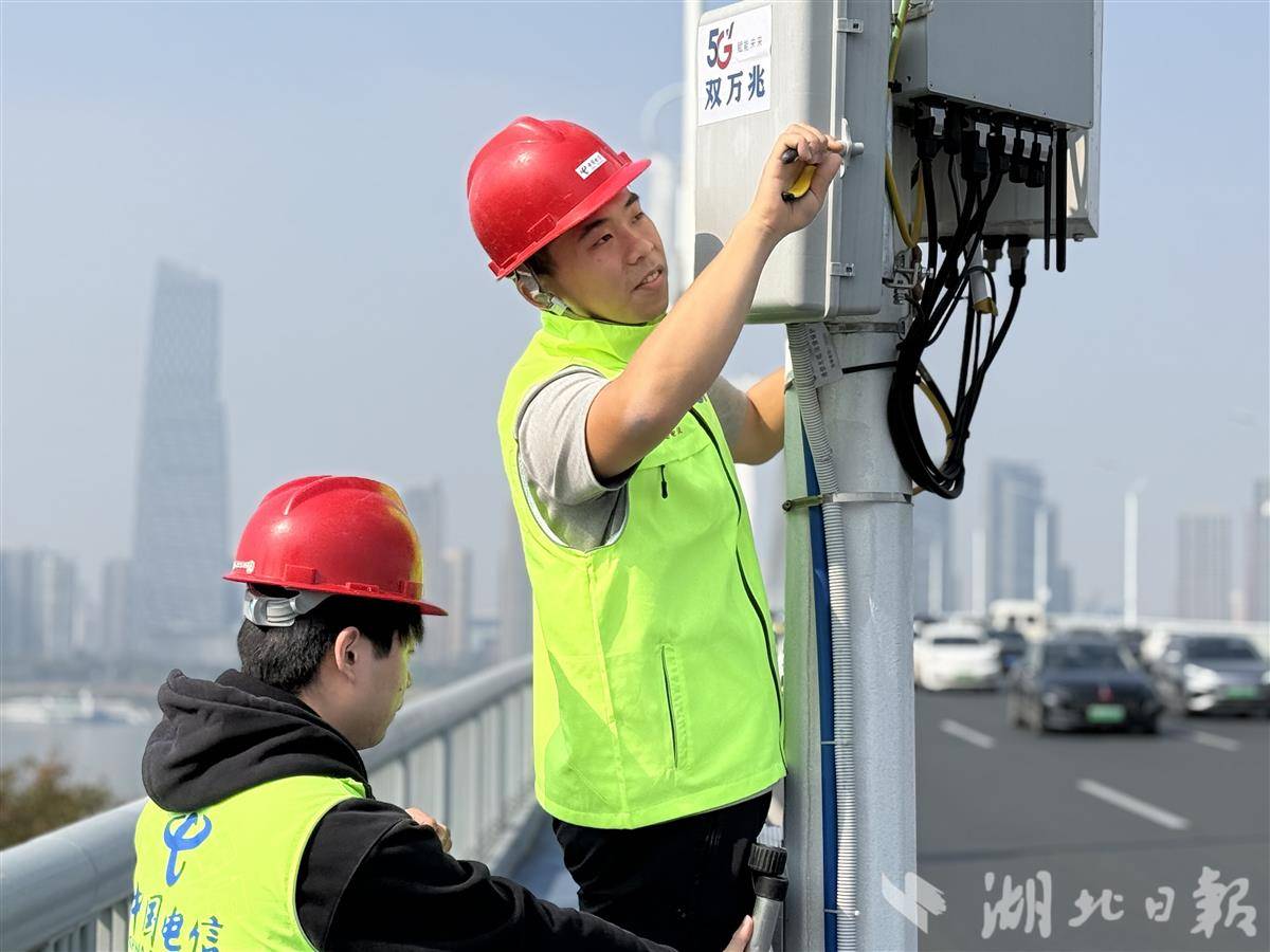湖北电信人员在武汉长江二桥桥面进行5G-A“双万兆”网络优化。(受访者供图)